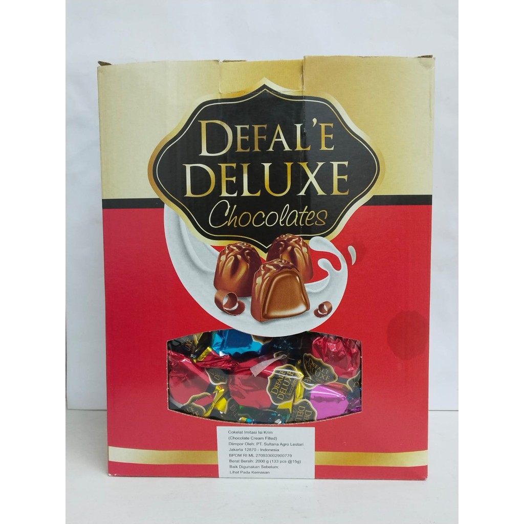 Nikmati sensasi cokelat premium dengan Defale Deluxe Chocolates yang hadir dalam kemasan jumbo 2000 gram. Dibuat dari bahan-bahan berkualitas tinggi, cokelat ini cocok sebagai suguhan istimewa untuk keluarga, pesta, acara spesial, maupun hadiah berkelas untuk orang terdekat.