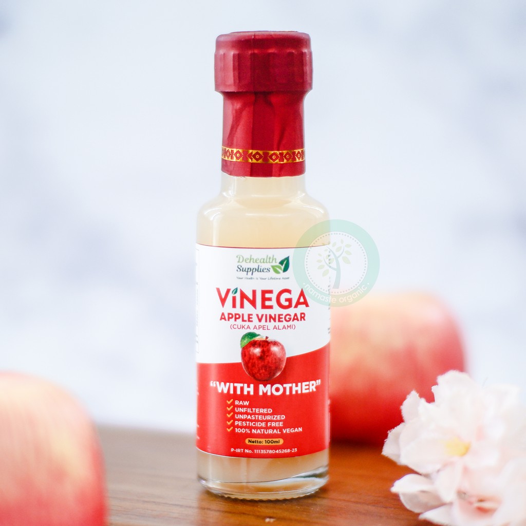 Dehealth Supplies Vinega Apple Vinegar terbuat dari apel terbaik alam Indonesia. Diproses dengan fermentasi alami sebanyak 2 kali tanpa proses pemanasan, tanpa pasteurisasi, tanpa pewarna, tanpa zat kimia, dan tanpa pengawet.
