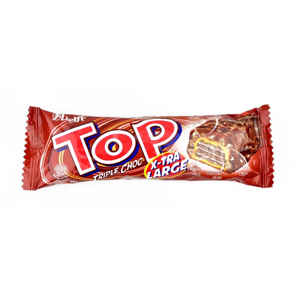 wafer renyah berlapis cokelat dengan beragam varian rasa, seperti cokelat, stroberi, dan black in white, yang dilengkapi tekstur renyah dari rice crispy dan krim.
