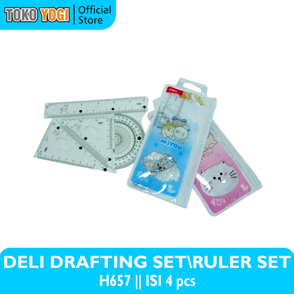 DELI RULER SET H657 || PENGGARIS SET ISI 4 || RANDOM