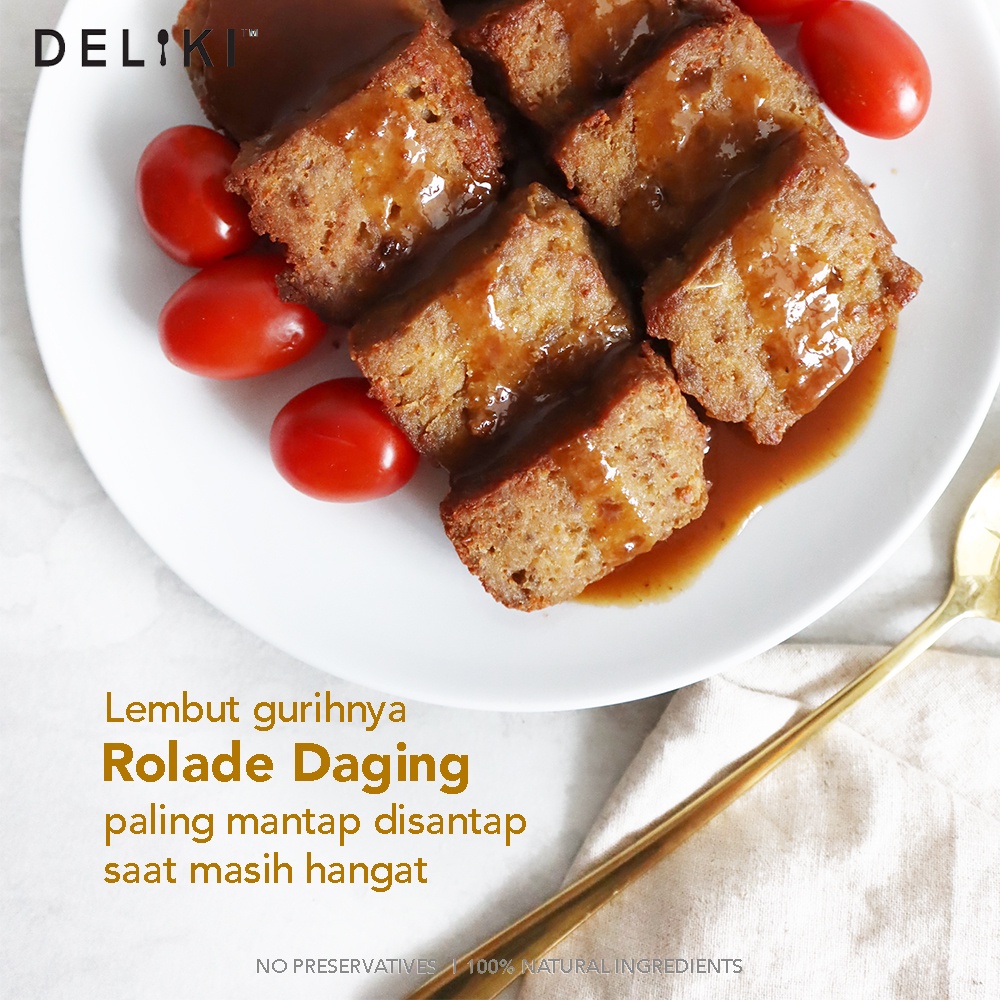 Rolade yang dibuat dari racikan daging sapi cincang, dilengkapi dengan saus gravy. 1 porsi terdiri dari 10 potong rolade. Semua produk DELIKI dibuat tanpa tambahan MSG, pengawet, dan pewarna. Freshly made by order. Tersedia dalam bentuk siap disantap (ready to eat) atau dalam kemasan vacuum packed.