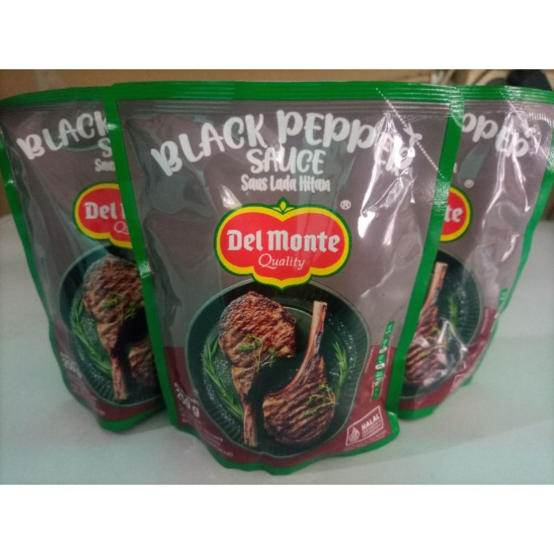 Saus DELMONTE Black Papper Terbuat dari bahan Pilihan Berkualitas Sangat Cocok Dijadikan Bumbu dan Toping Masakan.