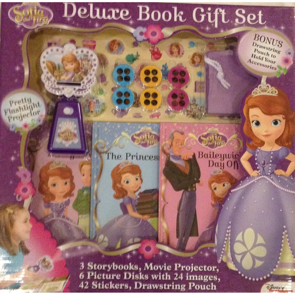 Sofia's world is filled with excitement magic and fun. Now with this deluxe book set you can be Sofia's special guest! These delightful storybooks bring three of Sofia's favorite adventures with her friends and family to life. And when you turn off the lights the magic gets even better! Your special projector lets you view story images on your wall. You can also use it as a flashlight. so the fun continues even when storytime is over.0