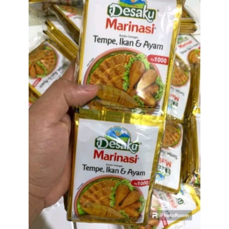 Desaku Marinasi adalah bumbu instan yang dapat digunakan untuk marinasi ayam goreng, ikan goreng, dan tempe goreng