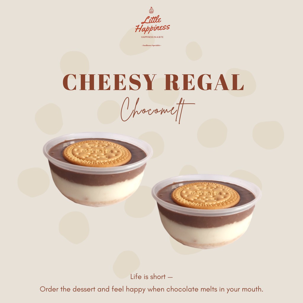 Untuk kalian pecinta keju, dessert cheesy regal dari Little Happiness adalah pilihan yang tepat. Dengan menggabungkan keju, coklat, biskuit regal yang kaya akan rasa susu akan memberikan rasa yang manis, asin, dan creamy secara bersamaan. Kalian akan merasakan kebahagiaan dalam setiap gigitannya.
