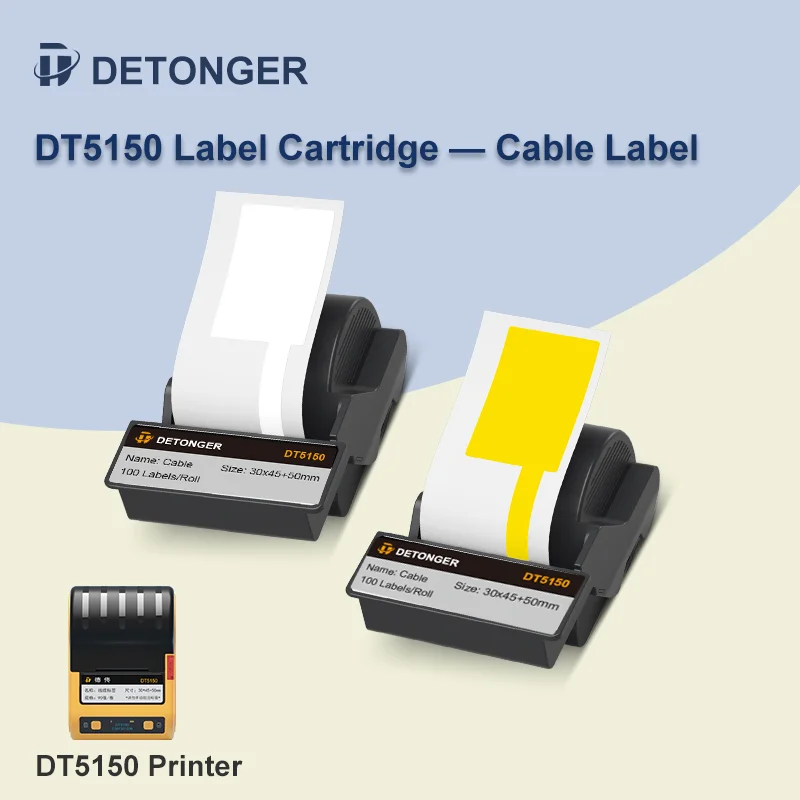 DETONGER Cable Label Cartridge Only for DT5150 Ribbon Printer Waterproof Oil Resistant Tear Resistant Adhensive Sticker