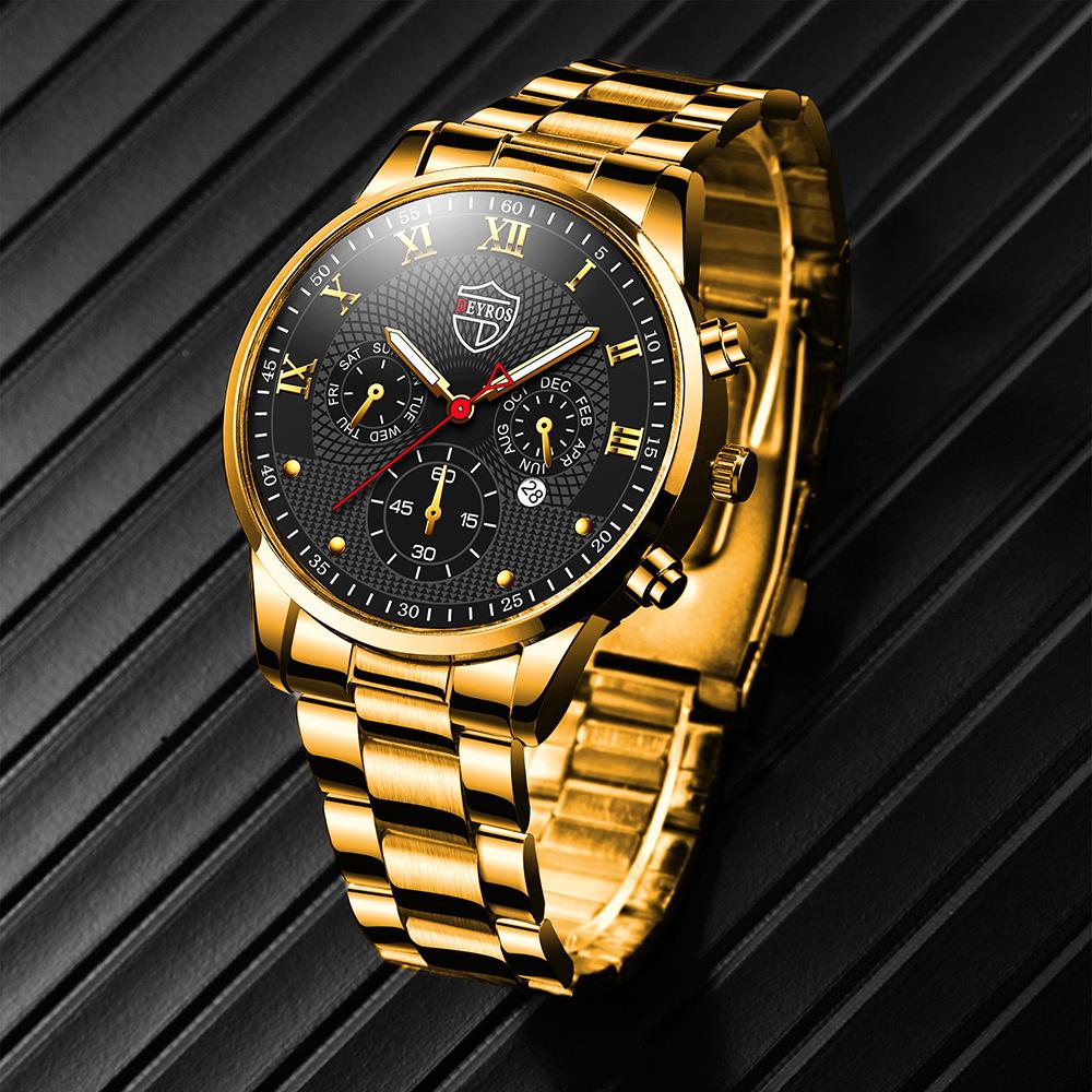 DEYROS Новые модные мужские часы класса люкс с деловым календарем, кварцевые часы с ремешком из нержавеющей стали, мужские часы, подарок на День отца