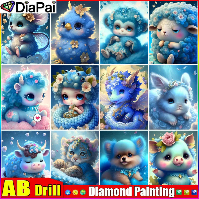 DIAPAI AB Diamond Painting Full Square/Round Diamond "Mouse Bird Monkey " Pattern Embroidery Cross Stitch 5D Rhinestone Painting