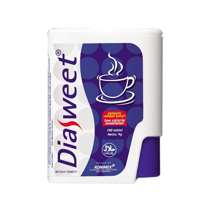 Pemanis buatan rendah kalori yang tersedia dalam kemasan pot isi 100 tablet (9 g).
