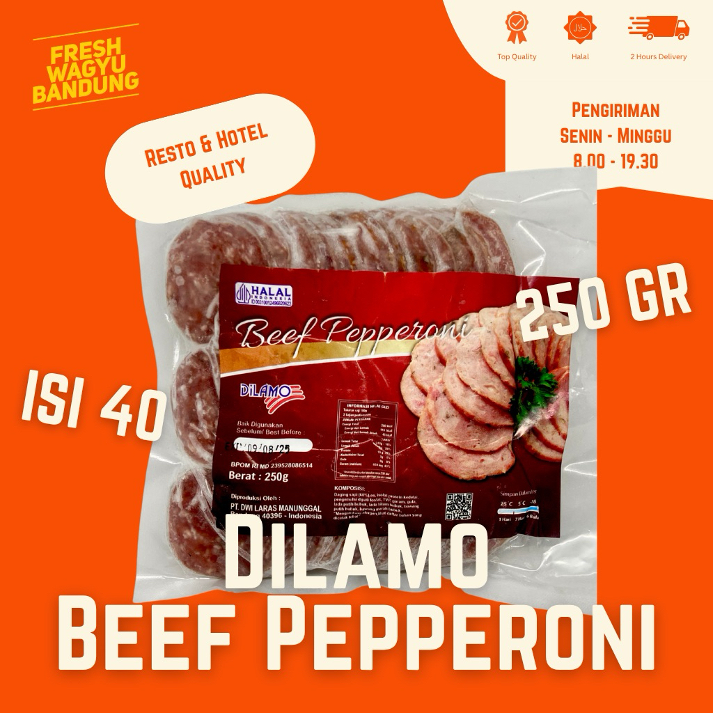 DILAMO BEEF PEPPERONI TOPPING PIZZA SOSIS SAPI HALAL PREMIUM 250g
