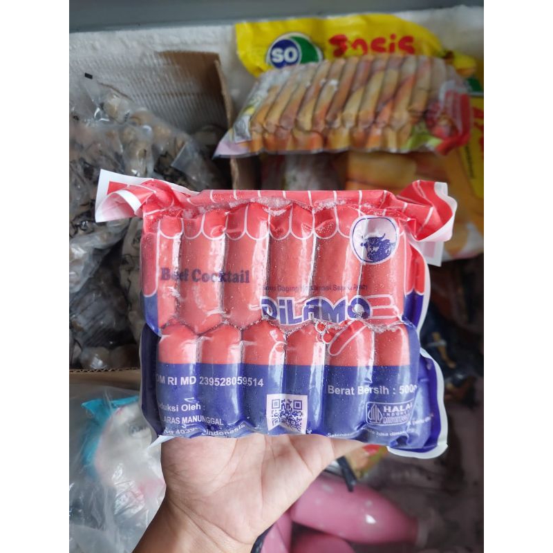 Sosis Dilamo, khususnya Dilamo Beef Cocktail, adalah sosis sapi yang terbuat dari daging premium dicincang halus, cocok untuk sarapan, makan siang, pesta, atau sebagai tambahan untuk pasta dan pizza, dan kulitnya yang terbuat dari kolagen sapi aman untuk dikonsumsi.