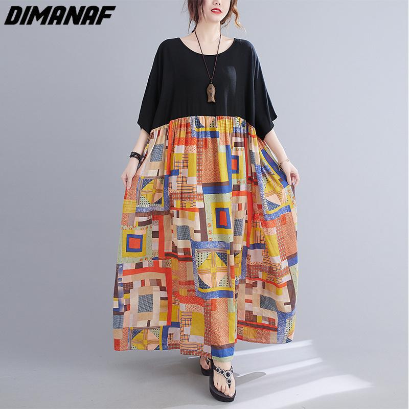 DIMANAF, женское длинное платье больших размеров, новинка 2023 года, летний стиль, с коротким рукавом, в стиле пэчворк, с круглым вырезом, с цветочным принтом, свободная новинка, новинка
