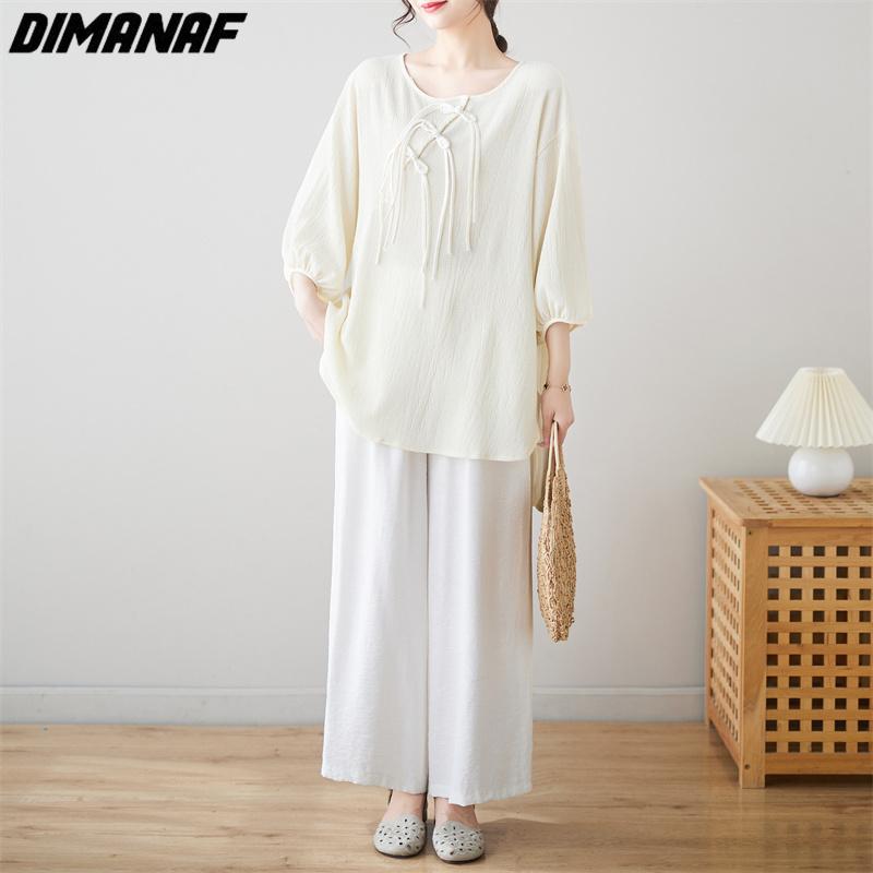 DIMANAF 2023 Большие размеры Женская блузка Рубашка Тонкая летучая мышь Летняя однотонная льняная рубашка большого размера