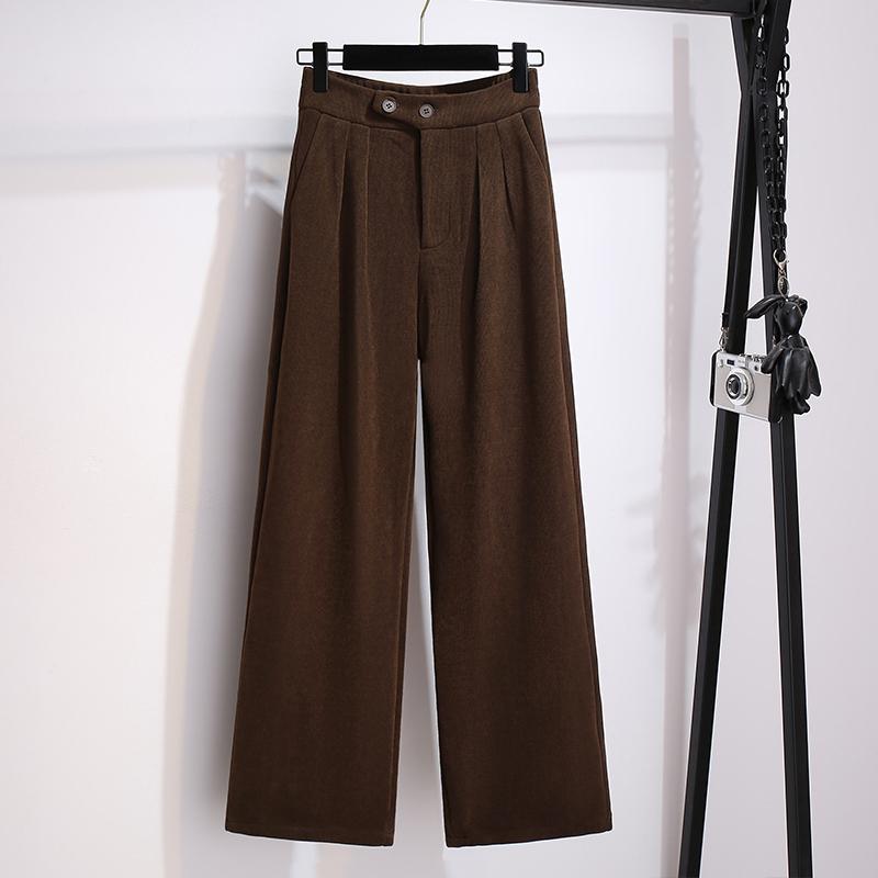 DIMANAF 2024 Большие размеры Осень Зима Новые Длинные Брюки Брюки с Высокой Талией Женские Однотонные Шаровары Базовые Повседневные Свободные Широкие Брюки 4XL коричневый