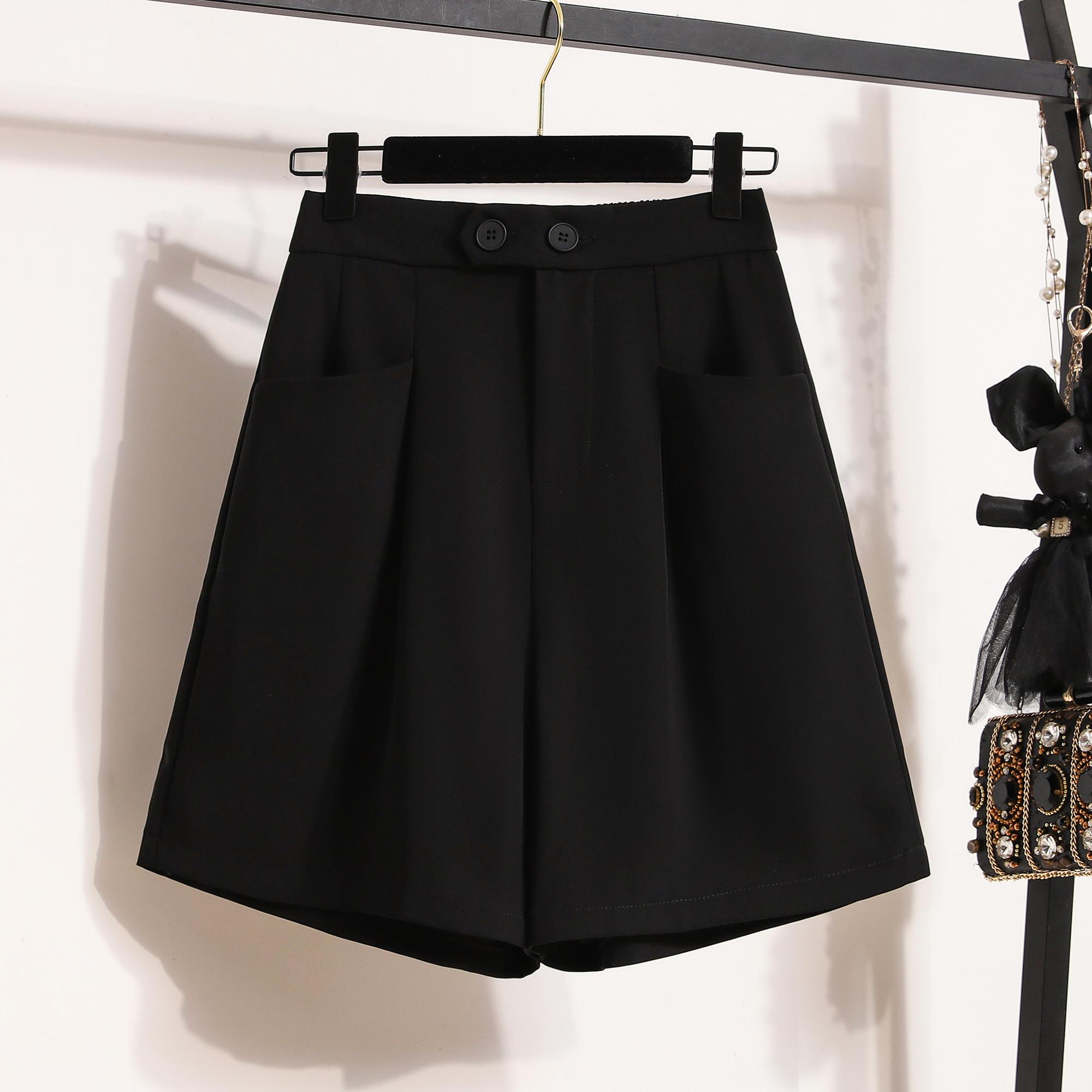 DIMANAF 2024 Большие размеры женские летние брюки широкие брюки шорты с высокой талией эластичные свободные повседневные базовые короткие брюки двубортные с пряжкой 4XL чёрный