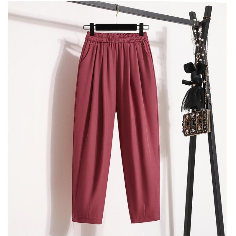 DIMANAF 2024 Лето Большие размеры женские длинные брюки-шаровары с эластичной резинкой на талии винтажные повседневные брюки однотонные хлопковые свободные брюки 4XL фиолетовый