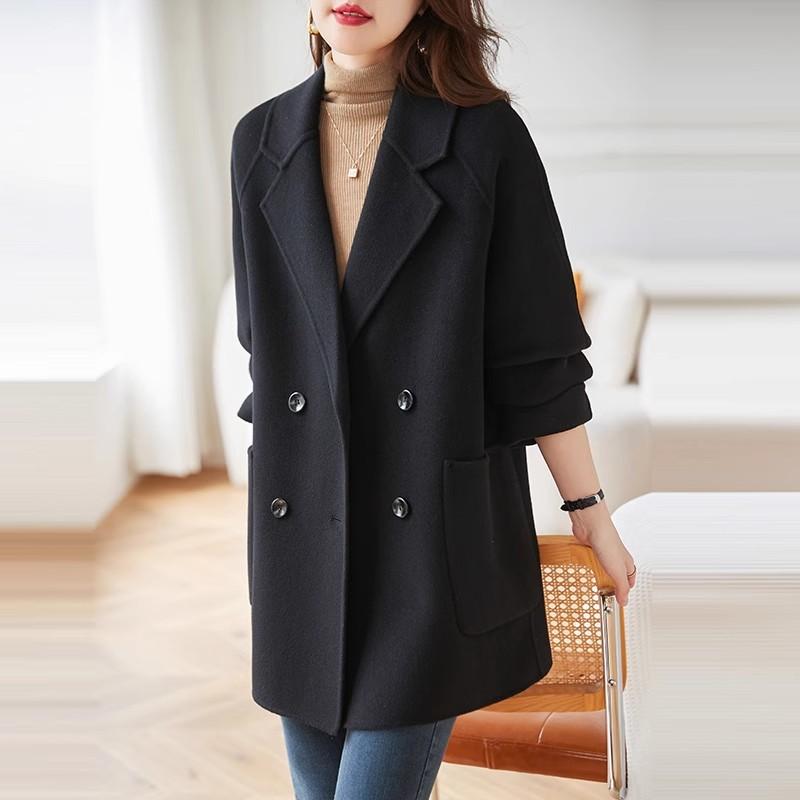 DIMANAF 2024 Осенние куртки Свободные лацканы Однотонные винтажные розовые повседневные длинные пальто M розовый
