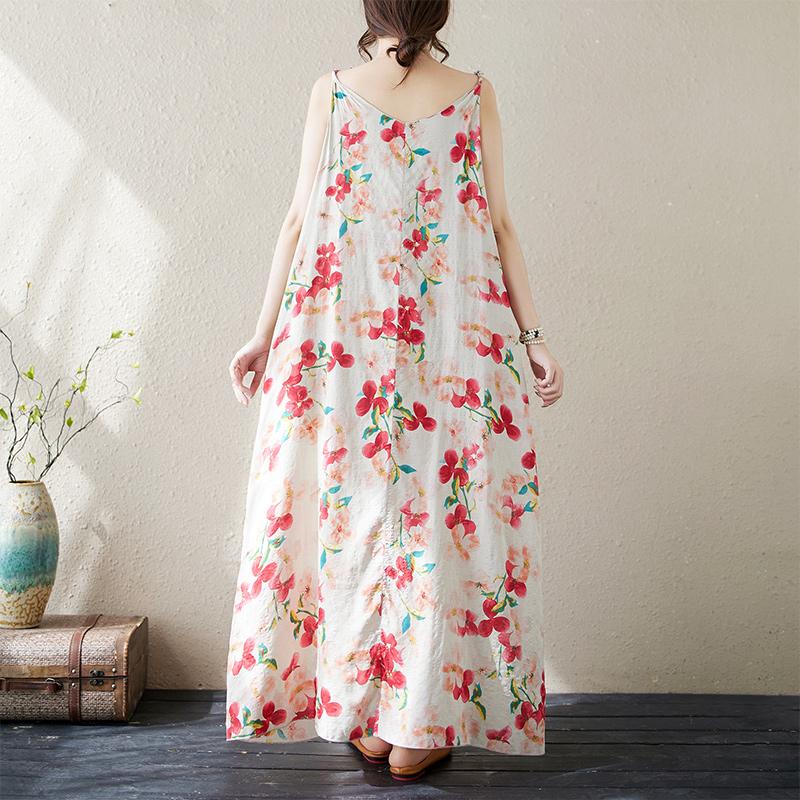 DIMANAF 2024 женское летнее платье женское длинное платье с цветочным принтом без рукавов льняная одежда с цветочным принтом 2010 2XL