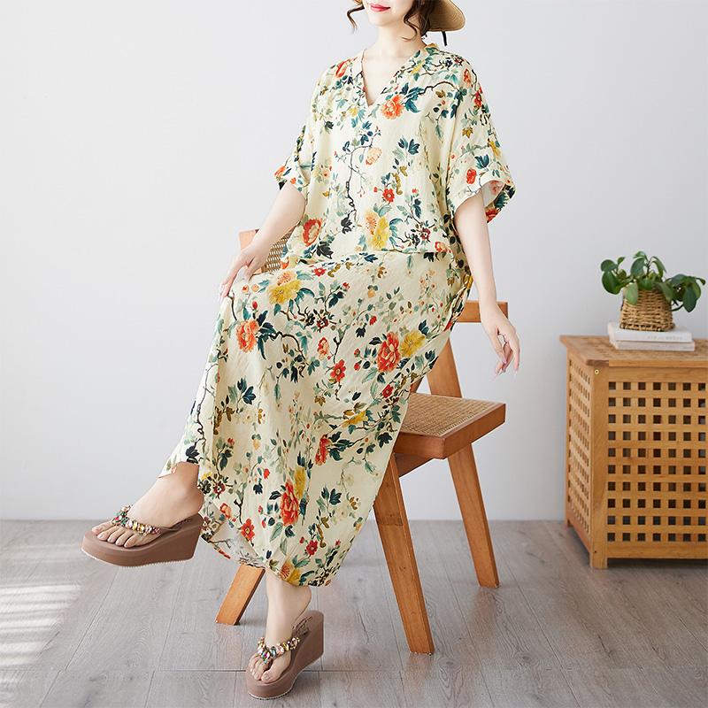 DIMANAF 2025 Летнее платье больших размеров Базовое женское повседневное свободное винтажное новое длинное платье большого размера с цветочным принтом Макси Large size average size