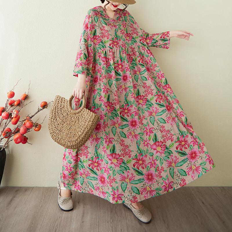 DIMANAF 2025 Лето Женское Плюс Размер Базовое Платье С Капюшоном Плиссированное Повседневное Длинное Свободное Винтажное Цветочное Платье Макси one size fits all
