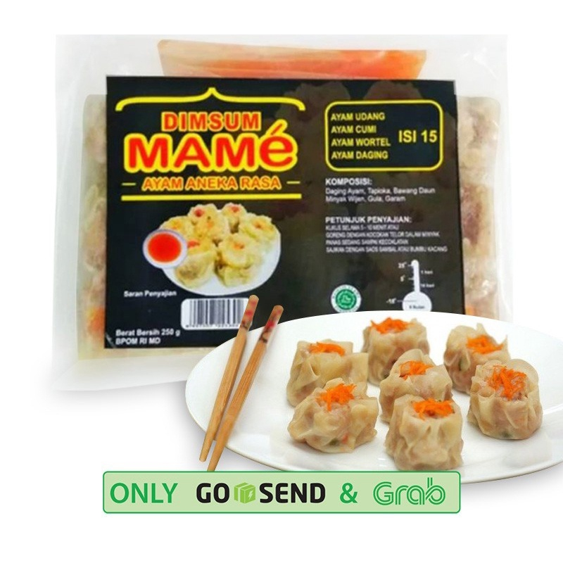 DIMSUM MAME AYAM ANEKA RASA UDANG, CUMI, WORTEL, AYAM isi 15 pcs merupakan makanan beku yang terbuat dari tepung, seafood dan ayam berkualitas yang diolah secara higiens, halal, dan bergizi. Cocok dinikmati saat santai bersama teman maupun keluarga. Dim sum secara tradisional disajikan sebagai hidangan siap saji yang dimasak sepenuhnya.