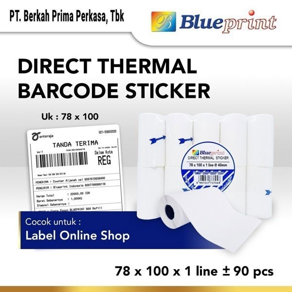 Sticker Barcode Thermal Label BLUEPRINT Size 78 mm X 100 mm