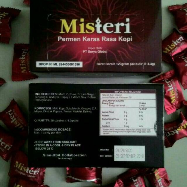 Misteri Ginseng & Coffee energetic candy (permen kopi) BPOM isi 30pcs