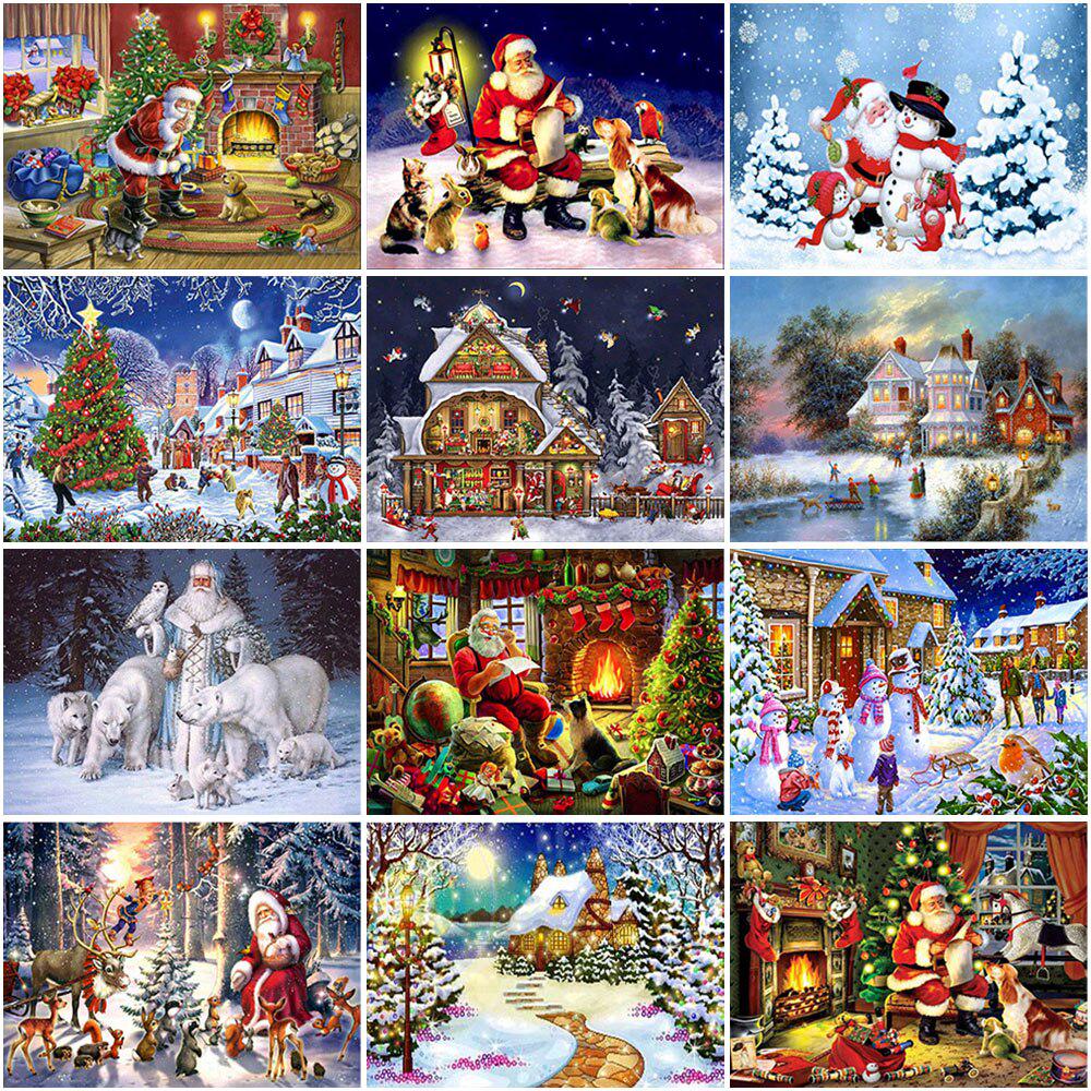 DIY Алмазная картина Санта 5d Полный алмаз Снежная сцена Алмазная вышивка Мозаика на Рождество