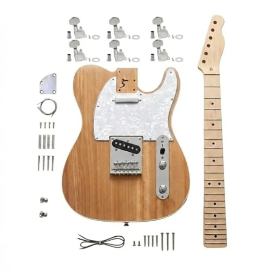 DIY Electric Guitar Kit with Elm Body Maple Neck 6 Strings Right-Handed 25.5 Inch Scale Length Natural Finish Customizable Hard