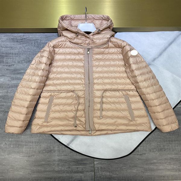 winter lightweight hooded down jacket arm badge women puffer jacket waist frenulum designer woman down jackets size 1--4300y, Black