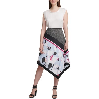 DKNY Женская черно-белая асимметричная юбка-миди трапеции с принтом BHFO 3564, Black/white