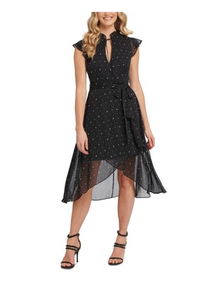 DKNY Женское коктейльное платье хай-лоу миди Black Tie с короткими рукавами и тюльпанами, Черный