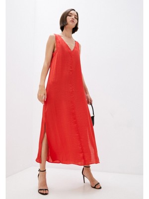 DKNY Womens Red V-образным вырезом Maxi Party Shift Dress, Красный