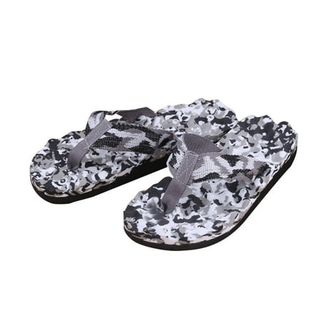 OUNONA Men Flops Antiskid Camouflage Sandals Slipper for Indoor Outdoor Home Beach - Size 44(Black)