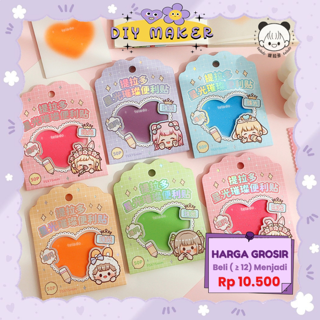 DM Sticky Notes Transparan Motif Love Memo Notepad Warna Warni Aesthetic Catatan Mini Note TLD158