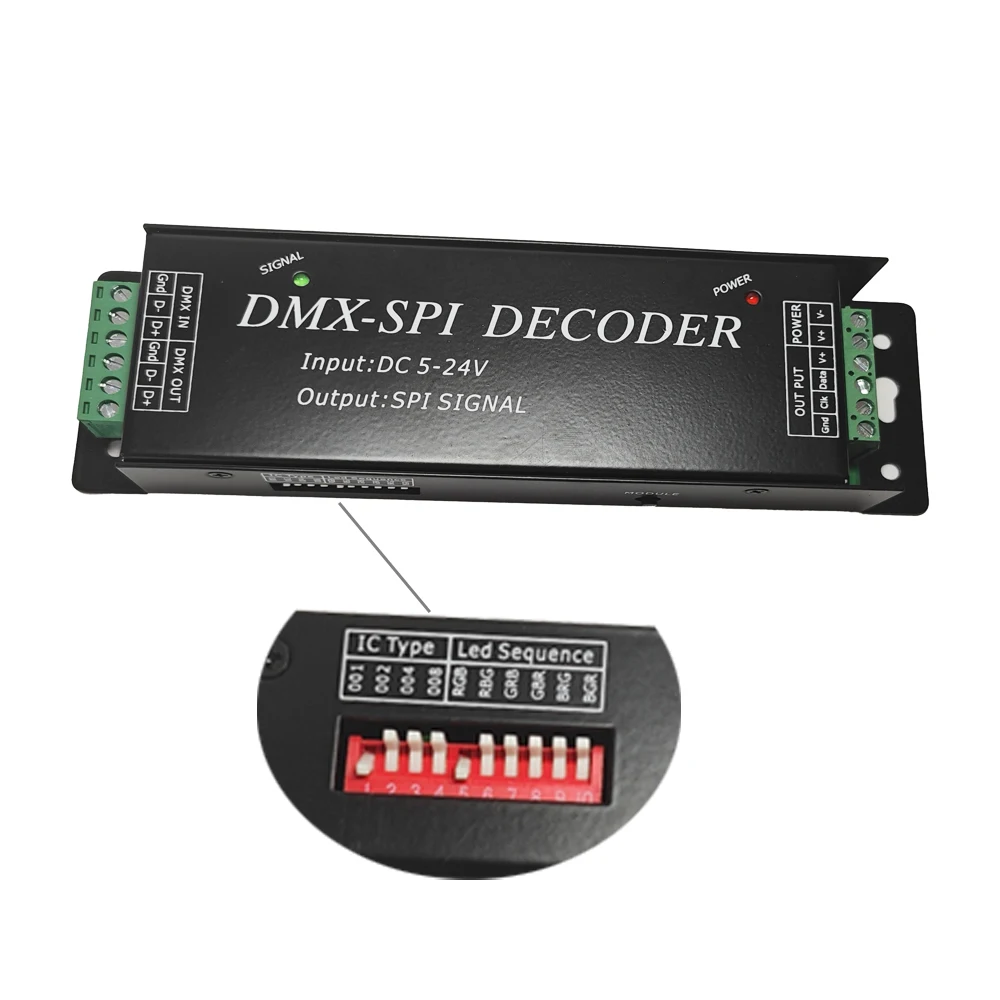 DMX-SPI Decoder DMX512 LED Controller support 10 kinds pixel IC For 2811 2812 2801 DC 5V-24V LED Strip Light By The Dip Switch