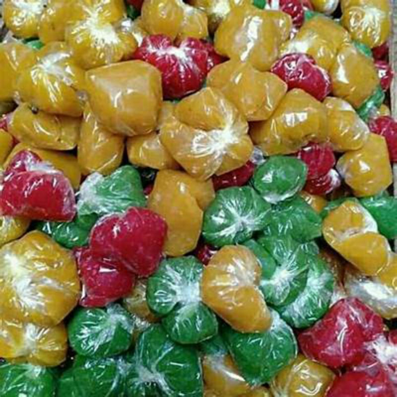 dodol buah diantaranya merupakan camilan yang memiliki tekstur kenyal dan lembut. dodol buah juga memiliki rasa yang manis dan juga di padukan dengan berbagai varian warna dan rasa.
