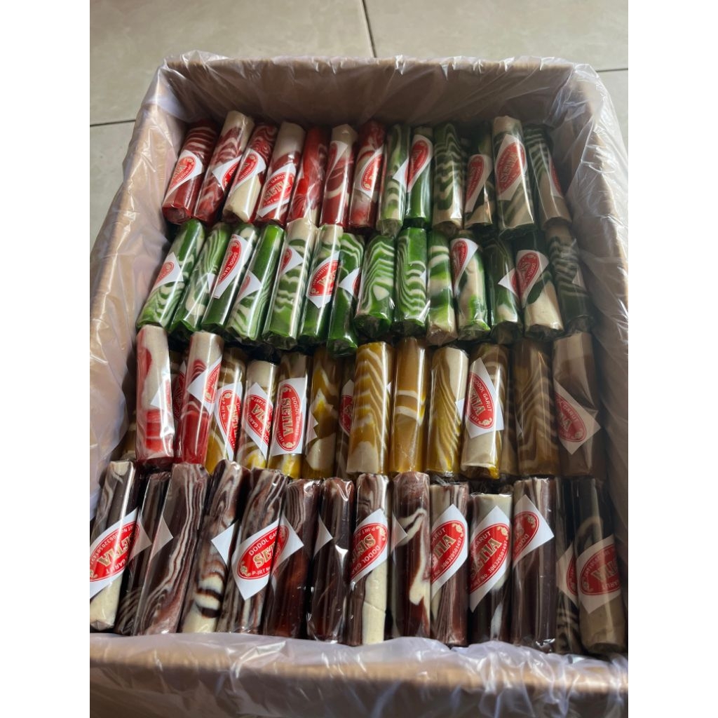 Dodol Zebra Warna Warni Khas Garut All Varian Oleh-oleh Khas Garut adalah varian dodol unik dengan tampilan menarik dan rasa yang lezat. Dibuat dari bahan berkualitas seperti tepung ketan, santan, dan gula kelapa, dodol ini memiliki tekstur kenyal dan lembut yang khas. Perpaduan warna-warni cerah dalam motif zebra menjadikannya tidak hanya nikmat disantap, tetapi juga menarik secara visual.