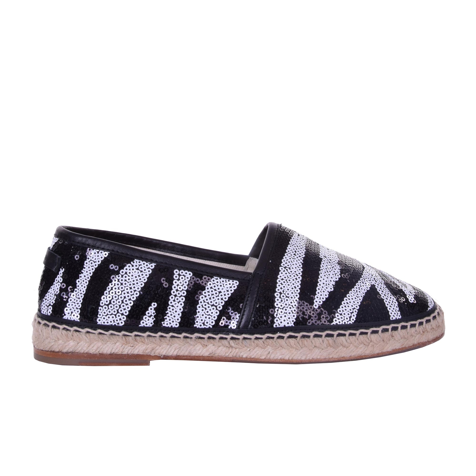 DOLCE - GABBANA Холщовые эспадрильи с пайетками TREMITI Zebra Black White 06223, Черный