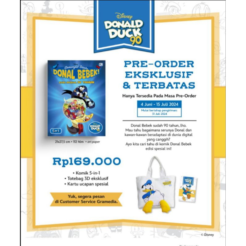 Edisi spesial dan terbatas. Berhadiah totebag Donal Bebek.