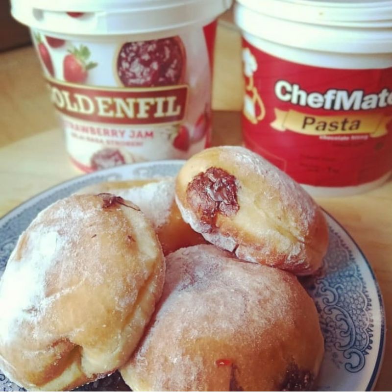Ciri donat ini, tengahnya tidak bolong tapi penuh dengan isian. paling seru kalo di makan bersama keluarga
