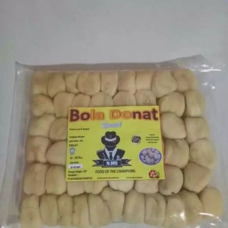 isi banyak 50 bola donat plus gula dan coklat bisa dibuat sate donat.. utk frozen food order dengan gosend ya..