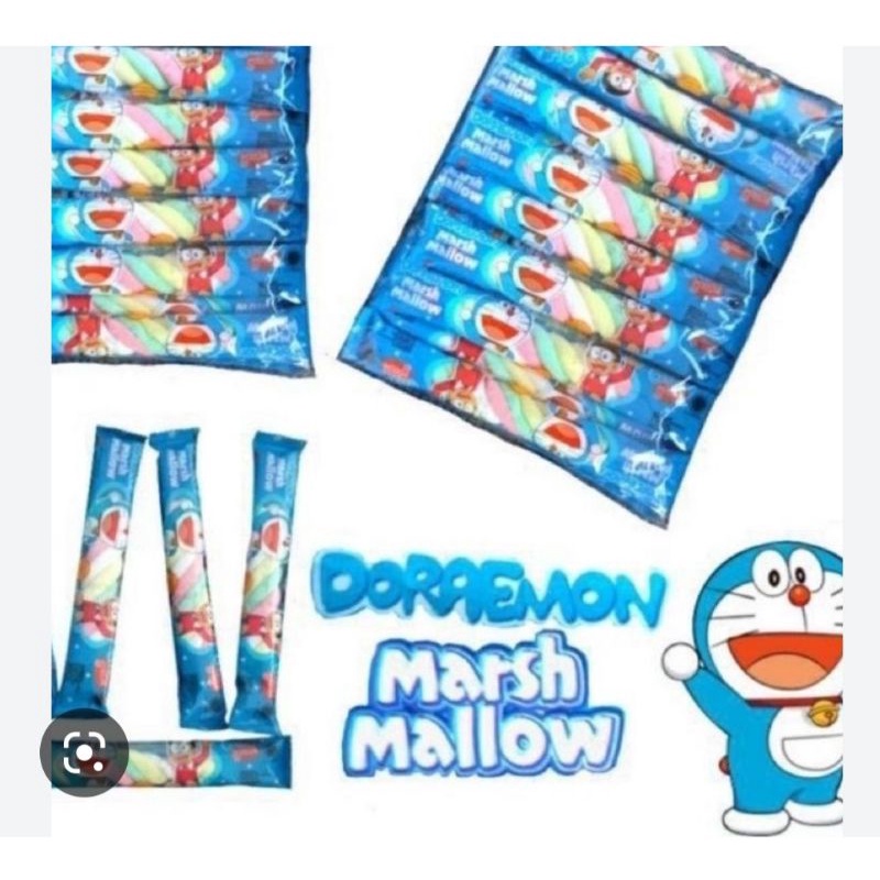 Doraemon marsh mallow tersedia bentuk kepang di jual perbungkus isi 20 pcs,,,yuk di order