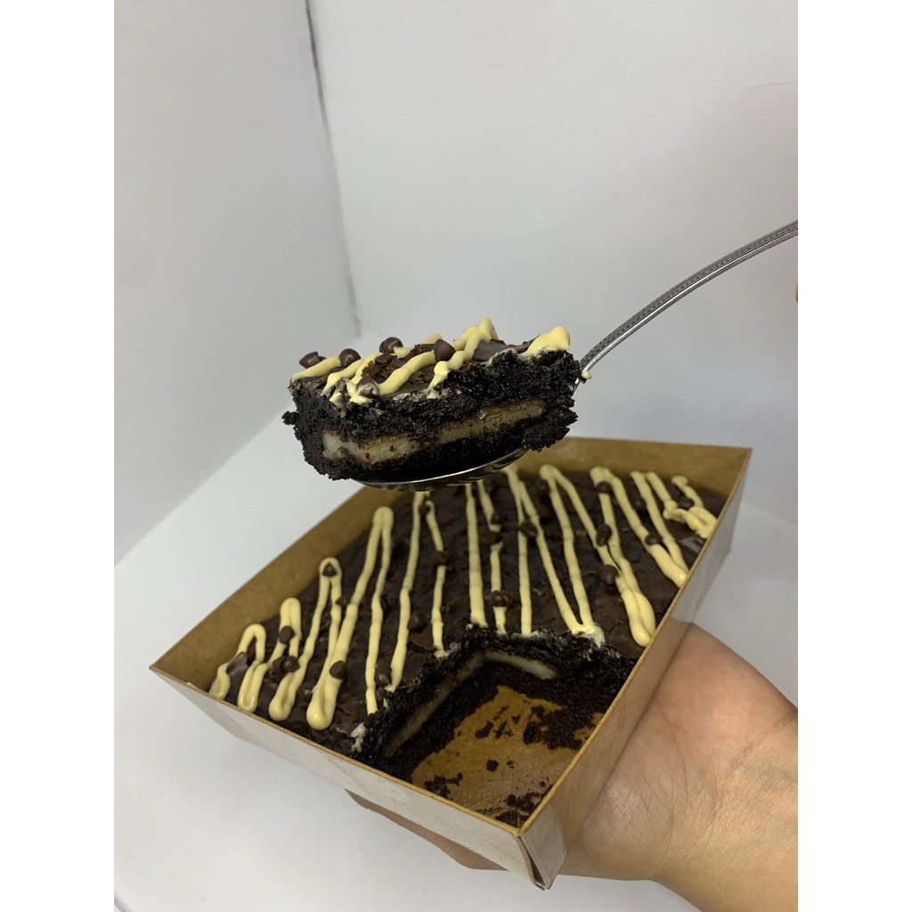 Sensasi nagih Brownies dengan Dark Chocolate, Gula Murni dan Tanpa Pengembang, dijamin rasanya coklat banget, manis, krispi diluar dan lembut didalam. sensasi baru dengan isian didalam brownies membuat semakin ketagihan.