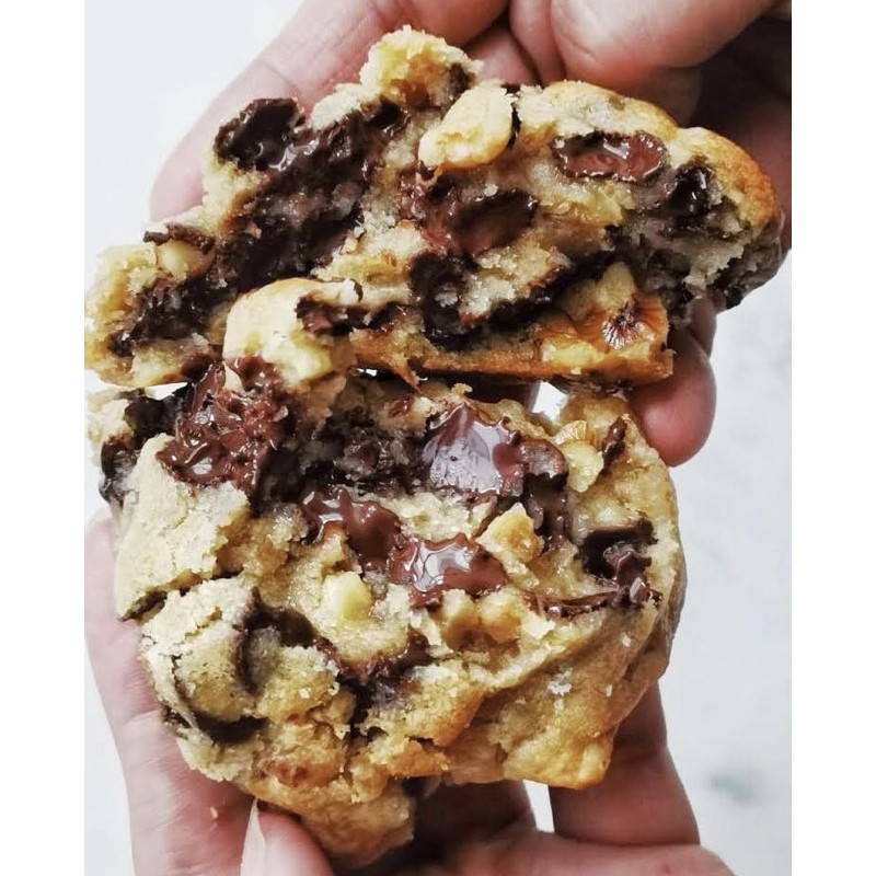 Giant chocolate chip cookie with chocolate chunks and walnuts