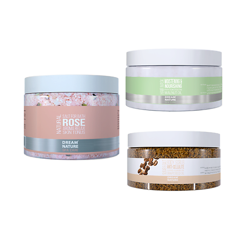DREAM NATURE СПА-набор: Маска Увлажнение и питание, Скраб Антицеллюлитный, Соль с розой, СПА-набор: Маска Увлажнение и питание, Скраб Антицеллюлитный, Соль с розой