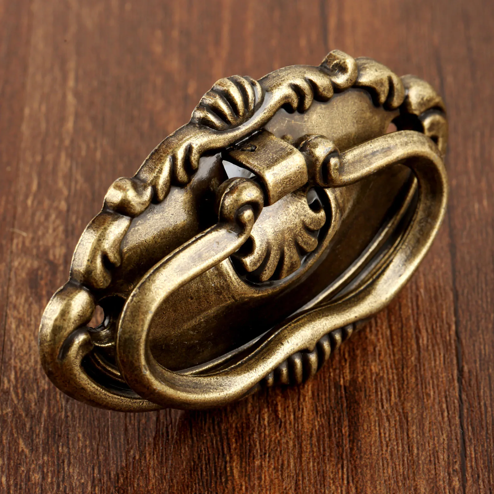 DRELD 1Pc 78*43mm Antique Bronze Furniture Handle Drawer Cabinet Jewelry Box Decorative Handles Pulls Knob Furniture Hardware