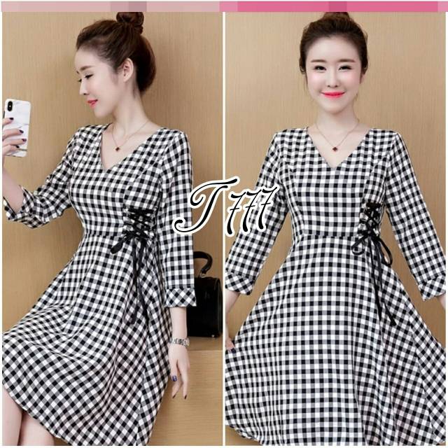 DRESS PiTA BOX BLACK 54.000 bahan katun kotak asli, fit to XL,pjg 103cm, lengan panjang, sleting belakang, tali depan bisa diikat