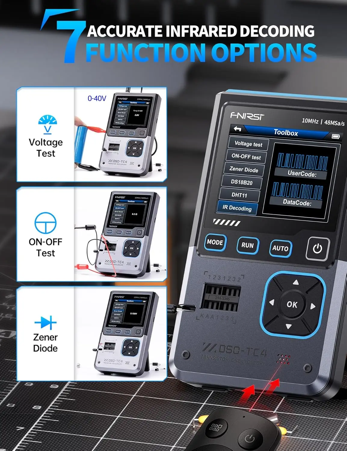 DSO-TC4 Handheld Oscilloscope 3-in-1, 10MHz Scope & Component Tester, 48MSa/s, DDS Signal Gen, 2.8" Screen for Electronic