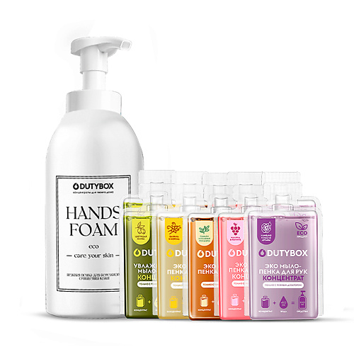 DUTYBOX Жидкое мыло для рук и тела из 5 ароматов, набор концентратов + емкость с дозатором в подарок 5000 Жидкие мыла